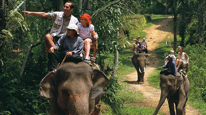 Befriend a great sumatran elephant on our adventurerelephant trek! Safely perched on the broad back of this majestic giant, plunge into a verdant tropical landscape, catching glimpses of chattering monkeys and colorful birds, as the trail follows the banks of the scenic ayung river. At the end of the30 minutetrek, you intelligent mount will cool off in the wading pool (while carefully keeping you high and dry!) Before delivering you to our restaurant for refreshments overlooking stunning valley scenery.